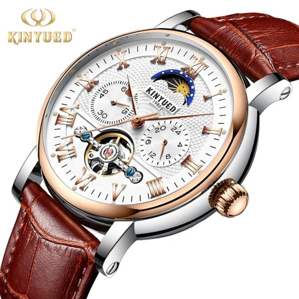Tourbillon Mechanical Watch Automatic Movement With Moon Phase Fashion Leather J029-1